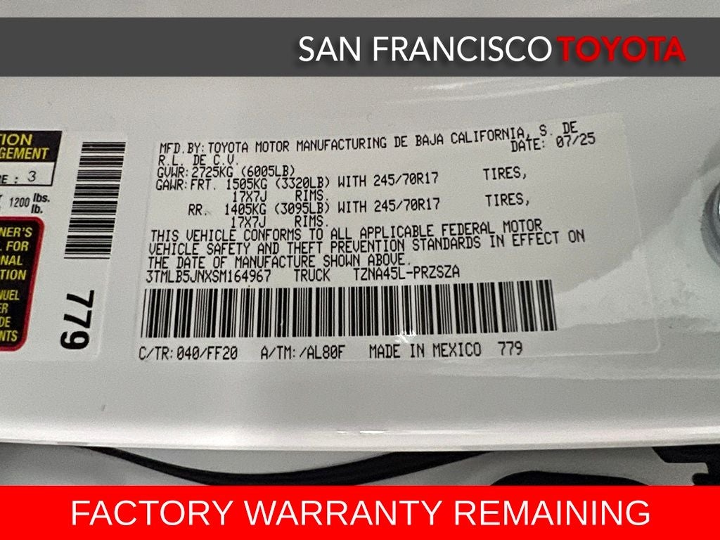 - Vehicle Name: Toyota Tacoma 4WD